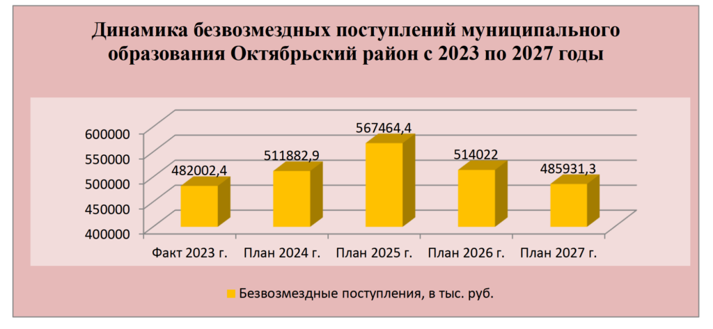В составе безвозмездных поступлений планируется получить дотации в сумме 121 314,0 тыс. рублей; субвенции в сумме 365 856,1 тыс. рублей и субсидии на софинансирование расходных обязательств района в сумме 24 676,5 тыс. рублей.