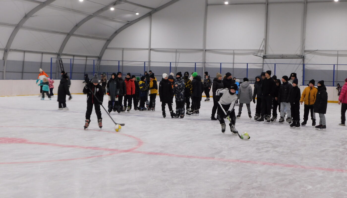 «Первые» традиционно разогрели народ флешмобом, а тренера спортшколы с помощью волонтеров задействовали практически каждого участника в веселых, но технически непростых конкурсах. Кататься на коньках по кругу – одно дело, а вот фигурно объезжать препятствия, выполнять по ходу задания, клюшкой вести футбольный мяч, да еще и не забывать о скорости – удавалось не каждому. Азарта, падений и гордости за выполненные эквилибры хватило на всех. Стимулировали соревнующихся и сладкие призы в большом количестве.
