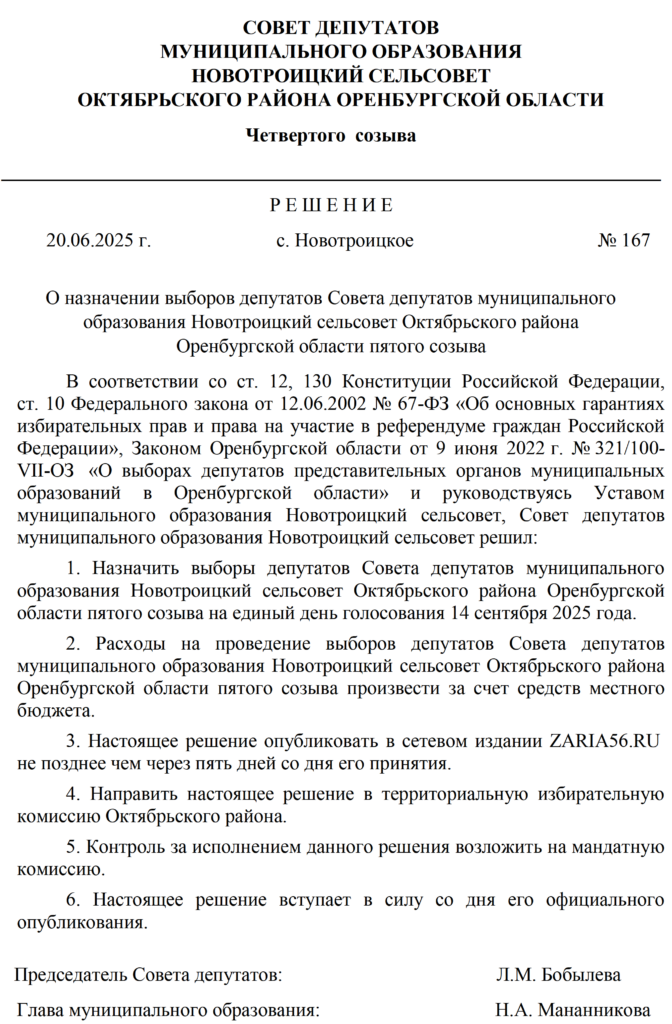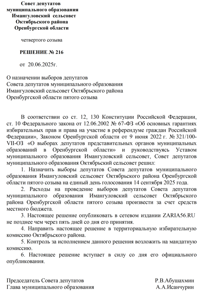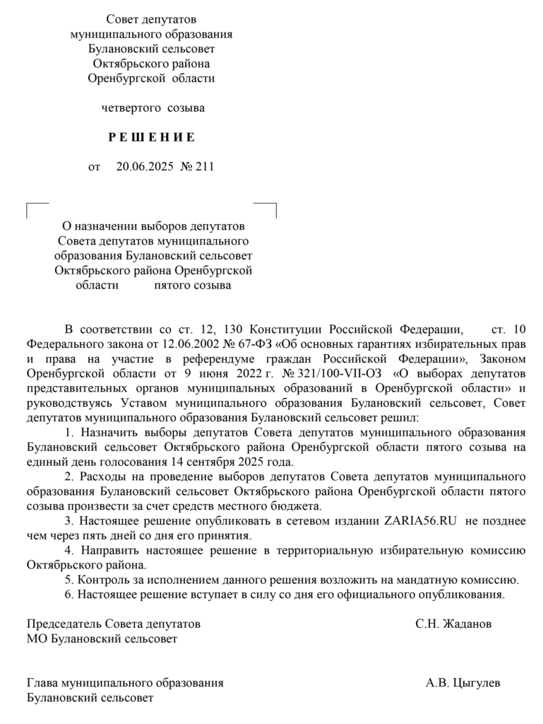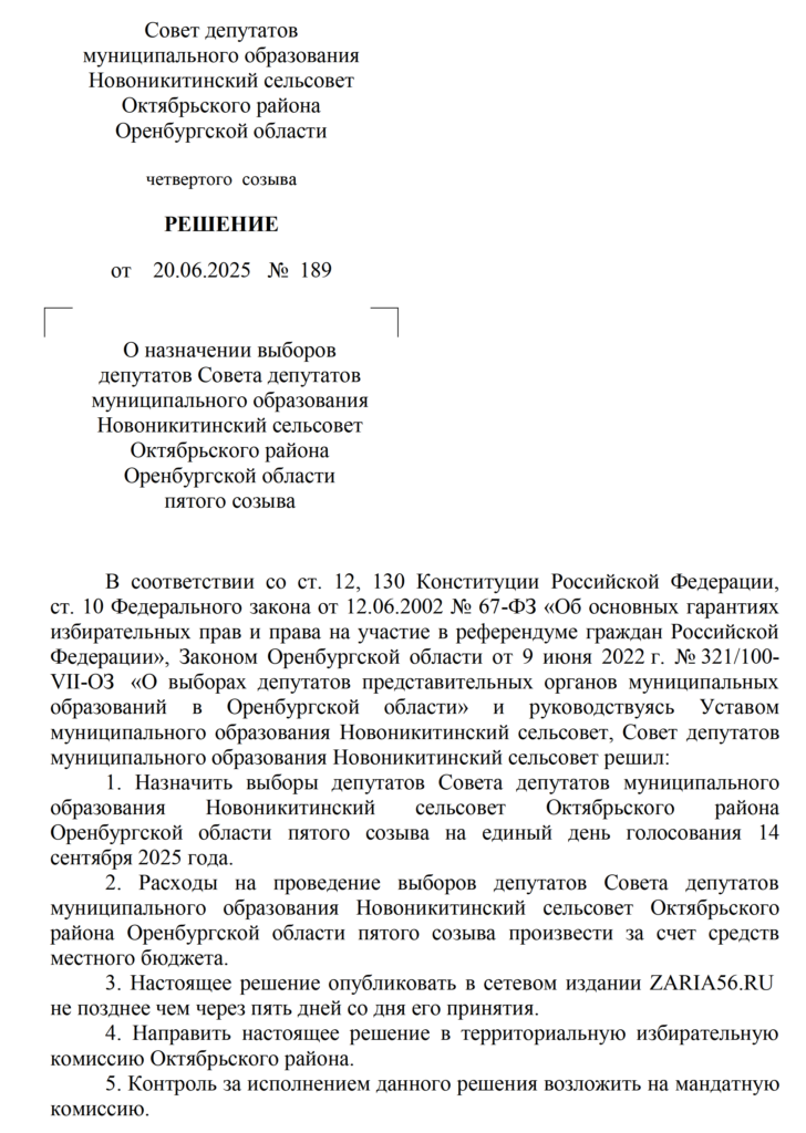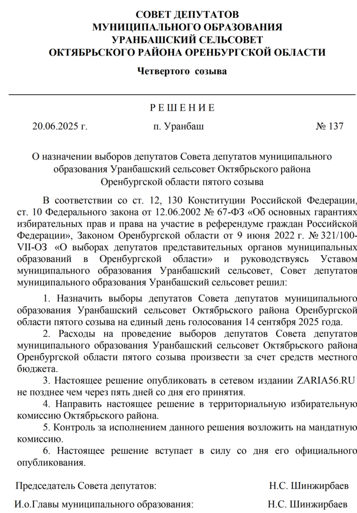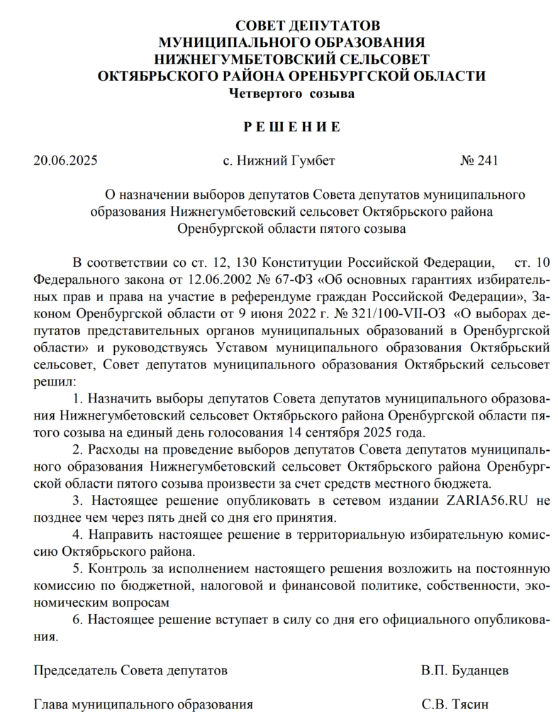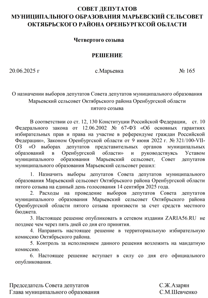 Решения Советов депутатов МО Октябрьский район и муниципальных образований сельских поселений о назначении выборов - Заря