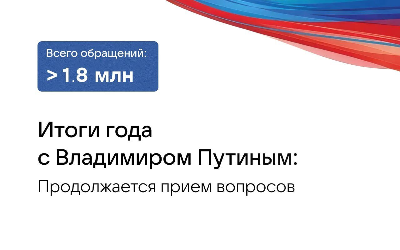 Свыше 1,8 миллиона вопросов уже поступило в адрес программы «Итоги года с Владимиром Путиным»